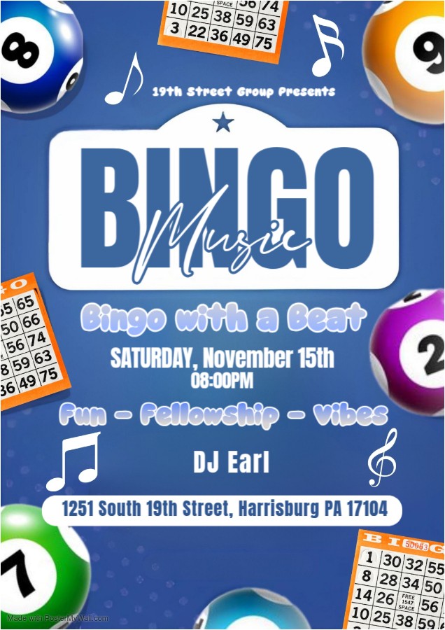 19th St. Group Game Night - Music BINGO 8:00 pm November 15, 2025 19th Street Group1251 S. 19th St.Harrisburg, PA 17104View LocationMap 19th Street Group View full calendar