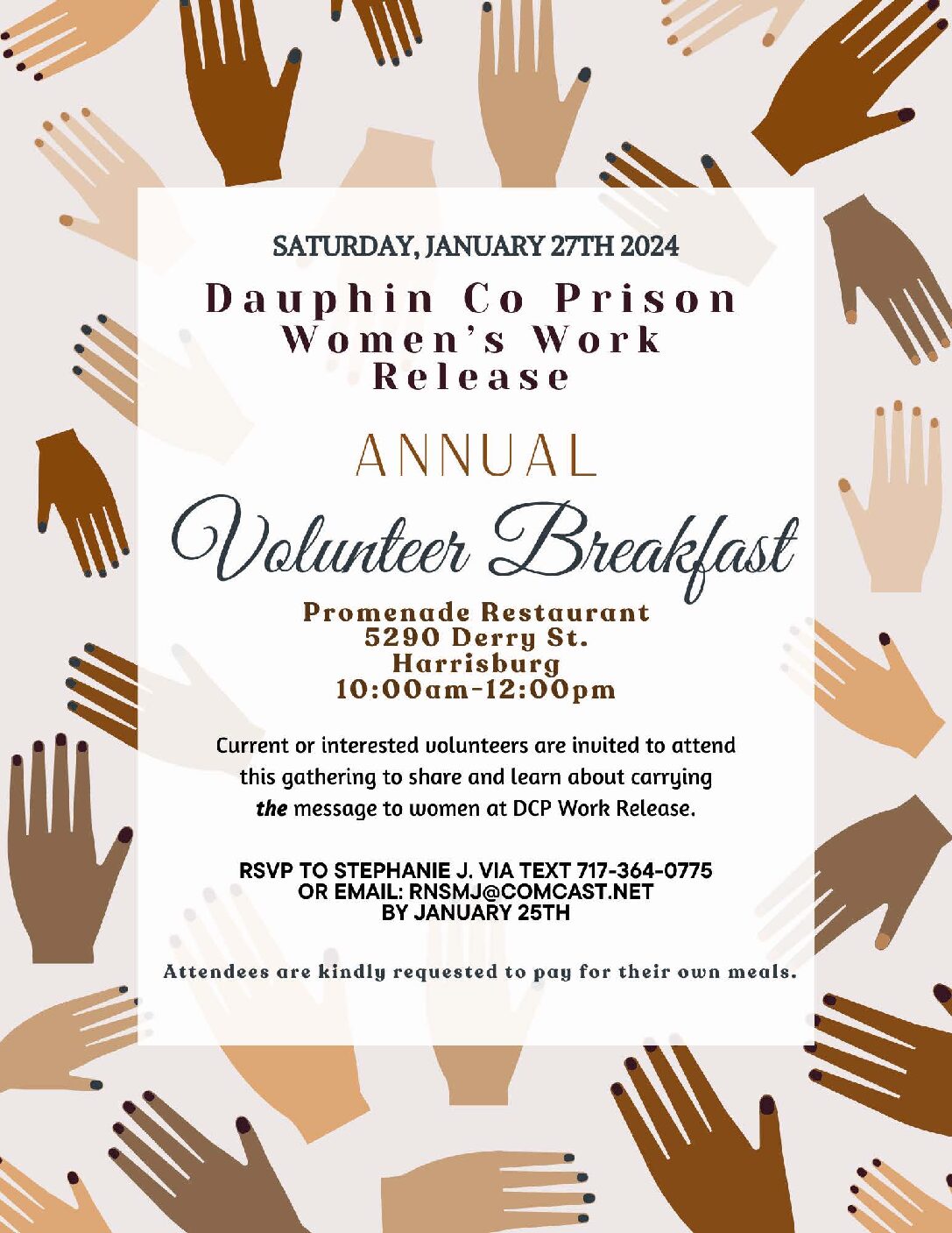 Women's Work Release Luncheon 10:00 am April 12, 2025 Beacon Hill Diner146 Sheraton Dr.New Cumberland, PA 170707173640775View LocationMap Beacon Hill Diner View full calendar